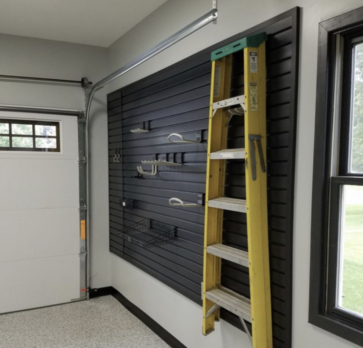 A simple slatwall upgrade in Webster, NY designed to get items off the wet winter garage floor and keep a small space organized.