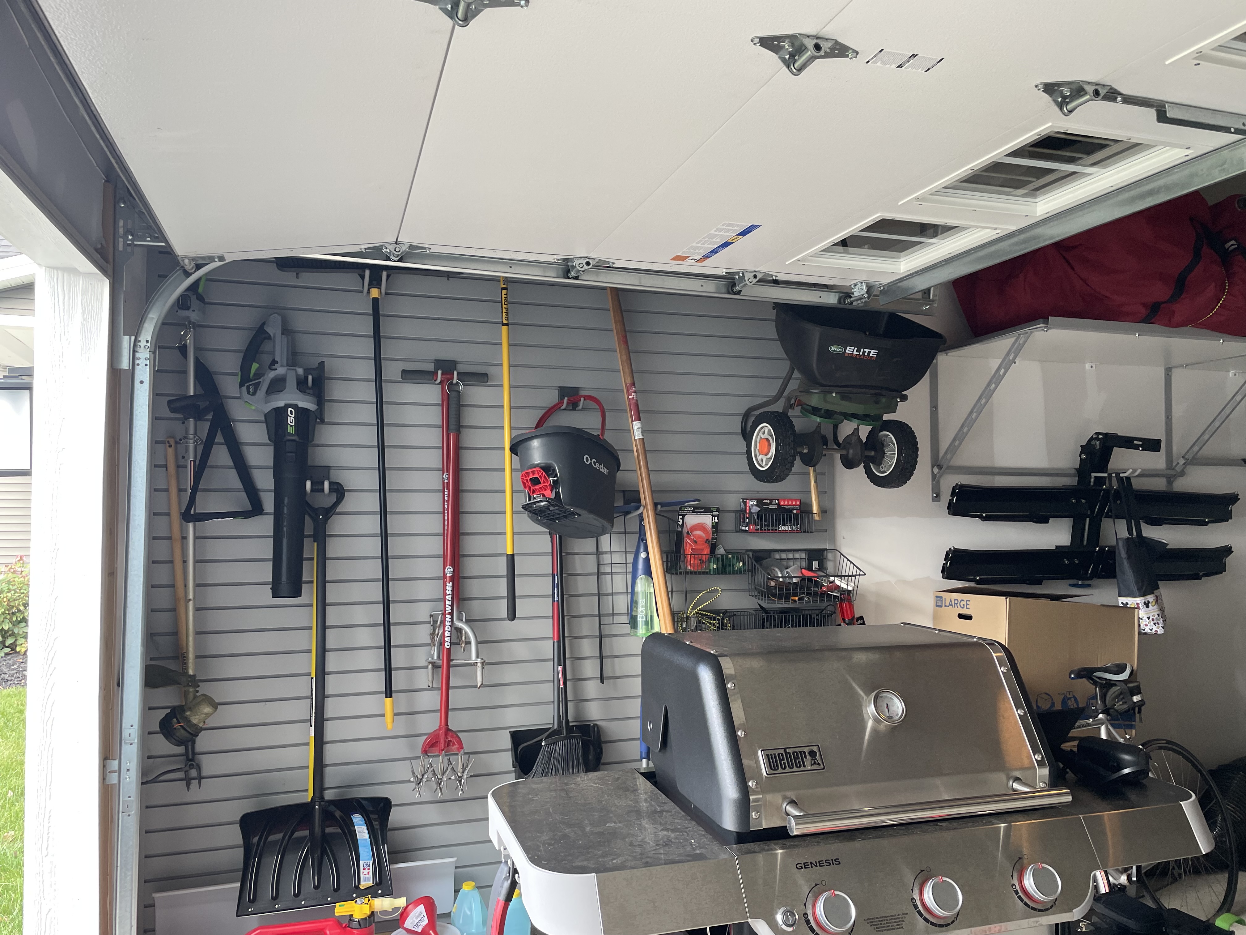 See how this Webster, NY garage was transformed with graphite slatwall, upgraded lighting, painting, and storage improvements. A total garage makeover with cabinets coming soon.