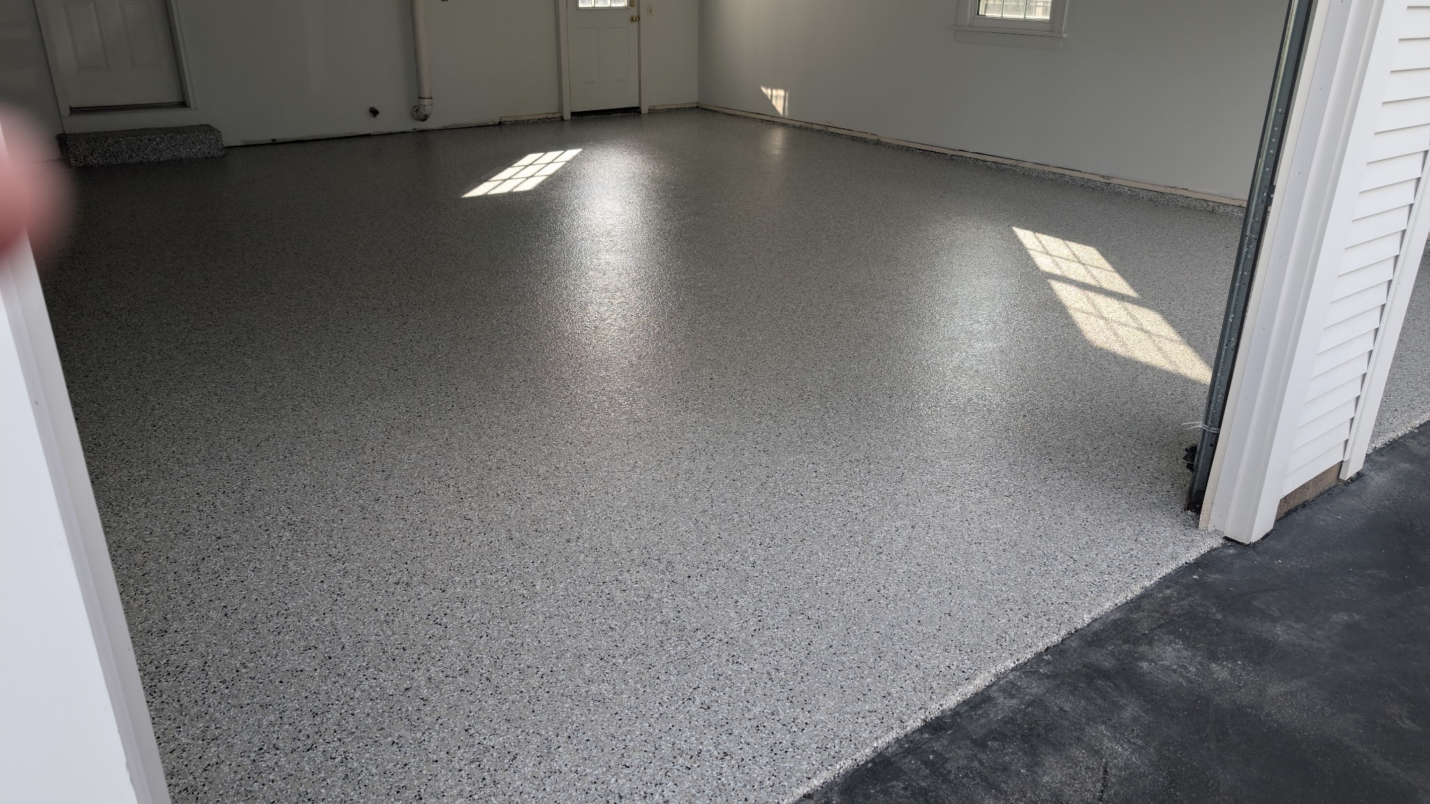 Fresh epoxy floors turned this Mendon, NY garage into a clean, organized space that’s ready for cars, tools, and weekend projects.